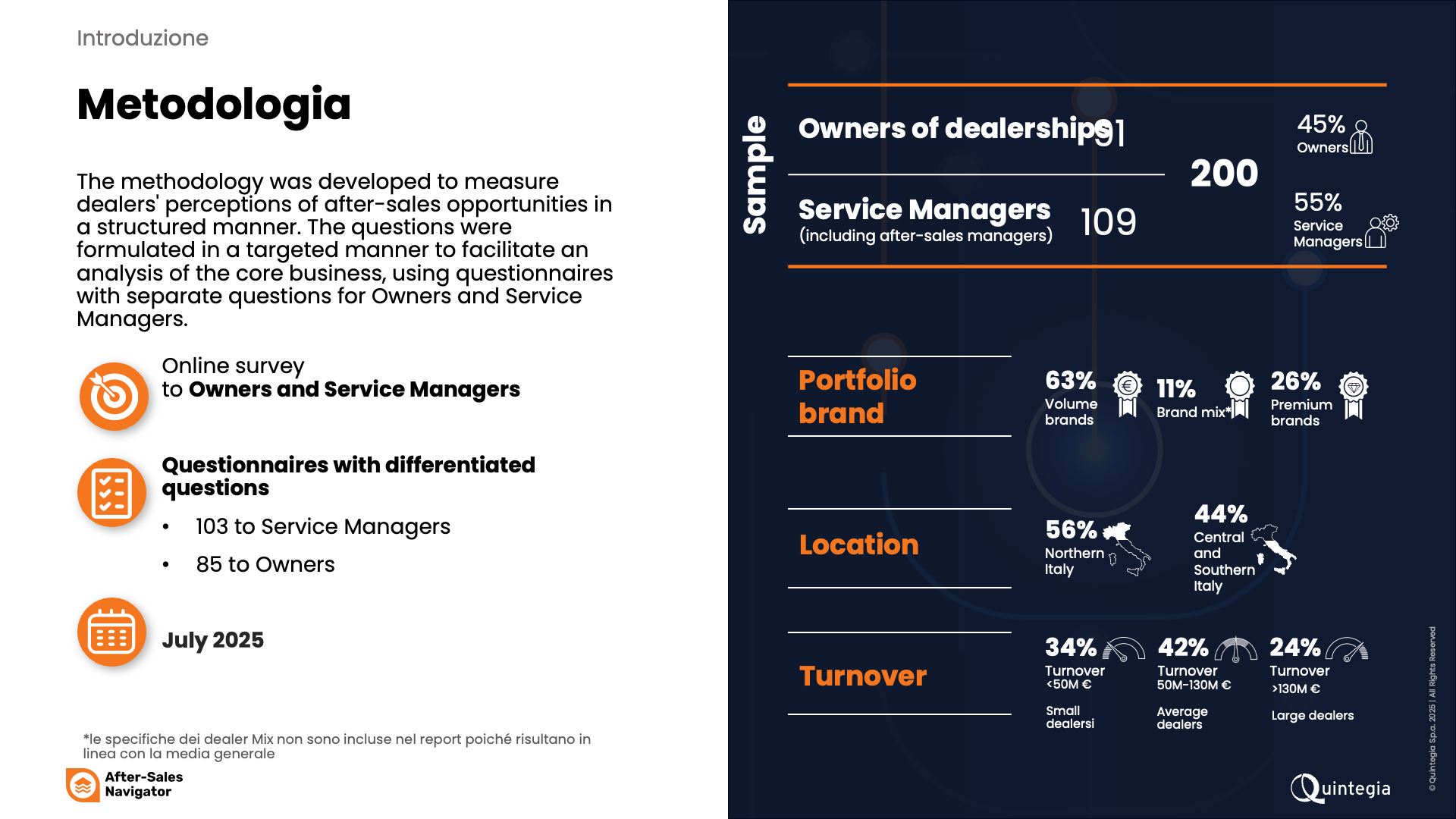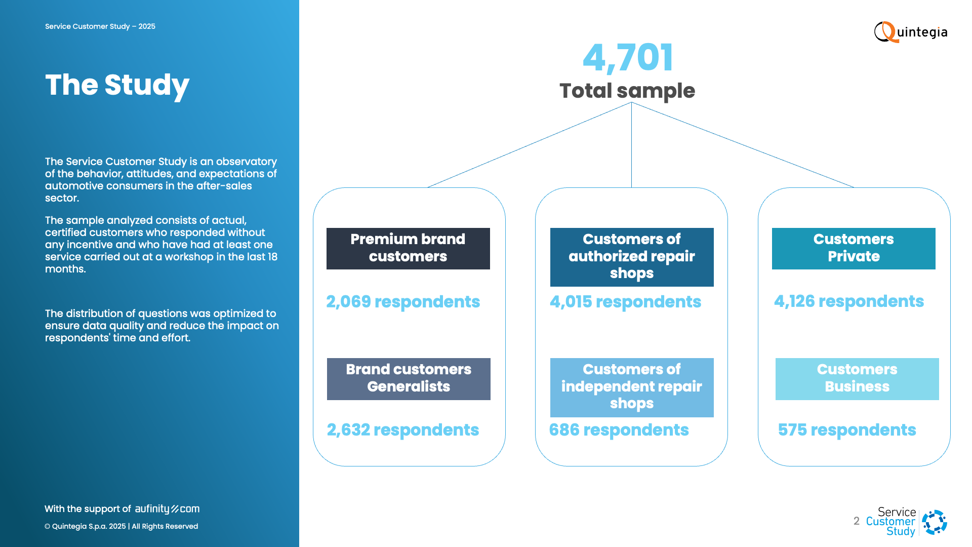 The Study involved 5,624 voluntary respondents in the survey period March 2024. The sample is divided into Recent owners (3,026 cases) who bought a car from 2022 onwards and Prospect owners (1,908 cases) who bought a car before 2022. Of both profiles, a distinction was made between New and Used profiles.